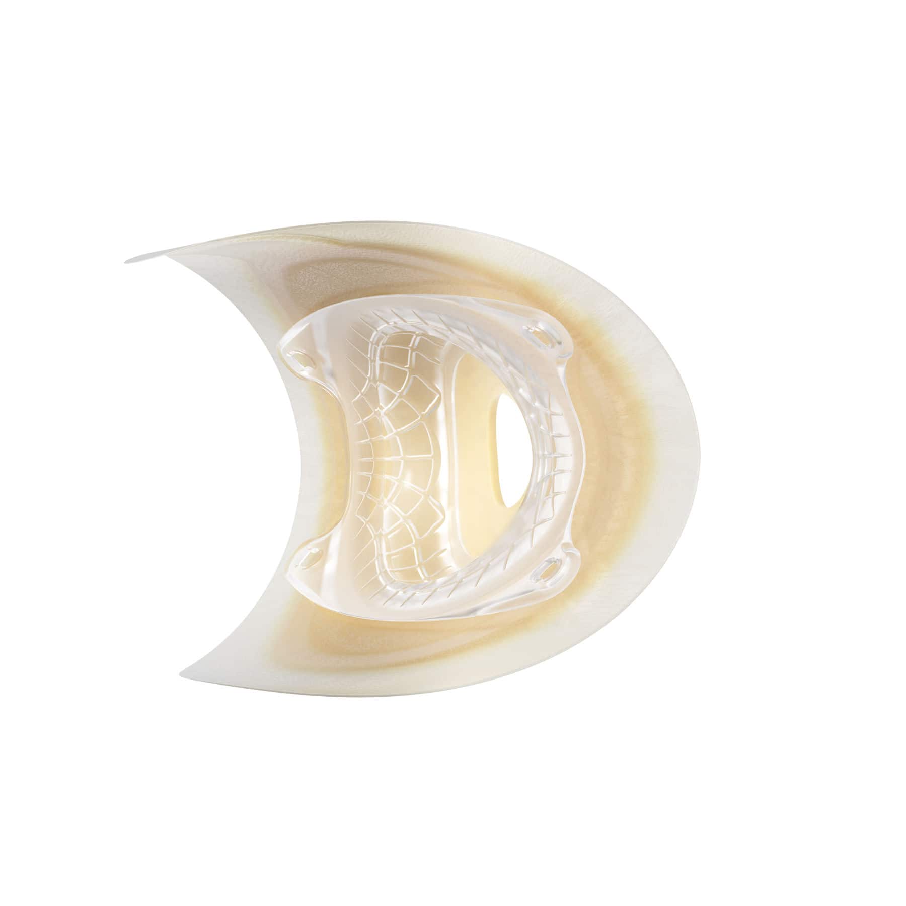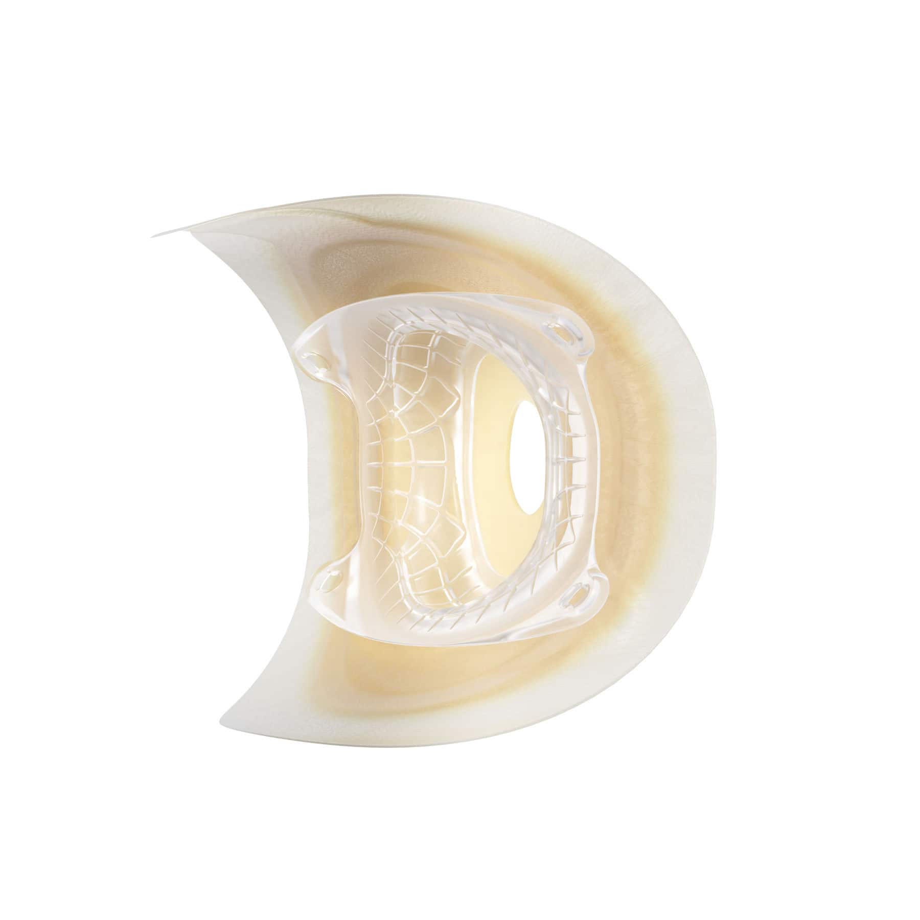 Mäßig komprimierbare* konvexe Basisplatte. Sie ist weniger komprimierbar und stabiler als die Soft-Variante und hält die erforderliche Tiefe für Stomata auf Hautniveau, die eine mäßige Unterstützung benötigen, um hervorzutreten. Gleichzeitig stützt sie nach innen gewölbte peristomale Bereiche mit leichten Falten.