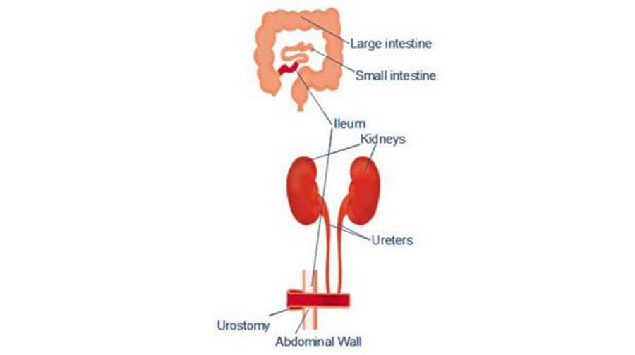 Ein stillgelegter Teil des Darms wird durch den rechten Unterbauch durch die Bauchdecke gezogen. Das andere Darmende wird vernäht. Die Harnleiter werden von der Blase getrennt und mit dem stillgelegten Darmabschnitt verbunden. Da der Darmabschnitt zu klein ist, um als Reservoir zu dienen und kein Muskel oder Ventil vorhanden ist, um das Urinieren zu kontrollieren, benötigt Ihr Patient einen Urostomabeutel, um den Urin zu sammeln.